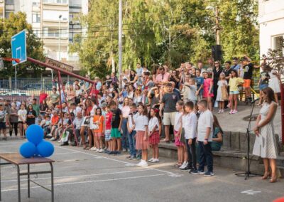 Након кратке и веселе приредбе коју су млађим другарима приредили ученици четвртог разреда, добродошлицу будућим ђацима пожелела је директорка школе Сања Шљивић. Пожелела је да им школски дани буду испуњени успесима, радошћу, лепим тренуцима и пријатељствима, а родитељима се захвалила на указаном поверењу.