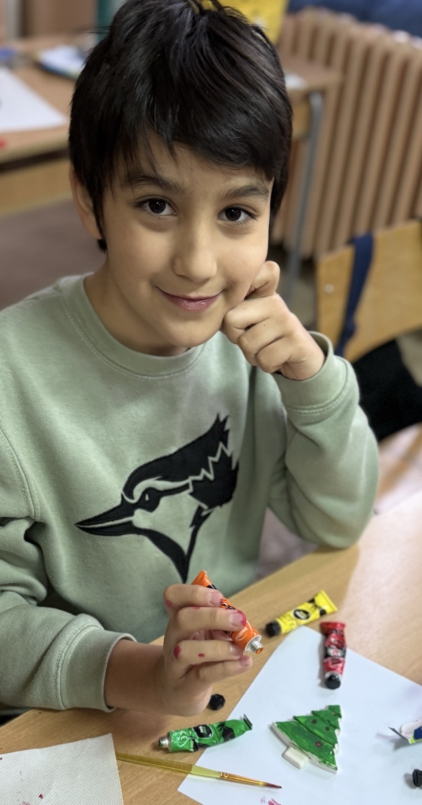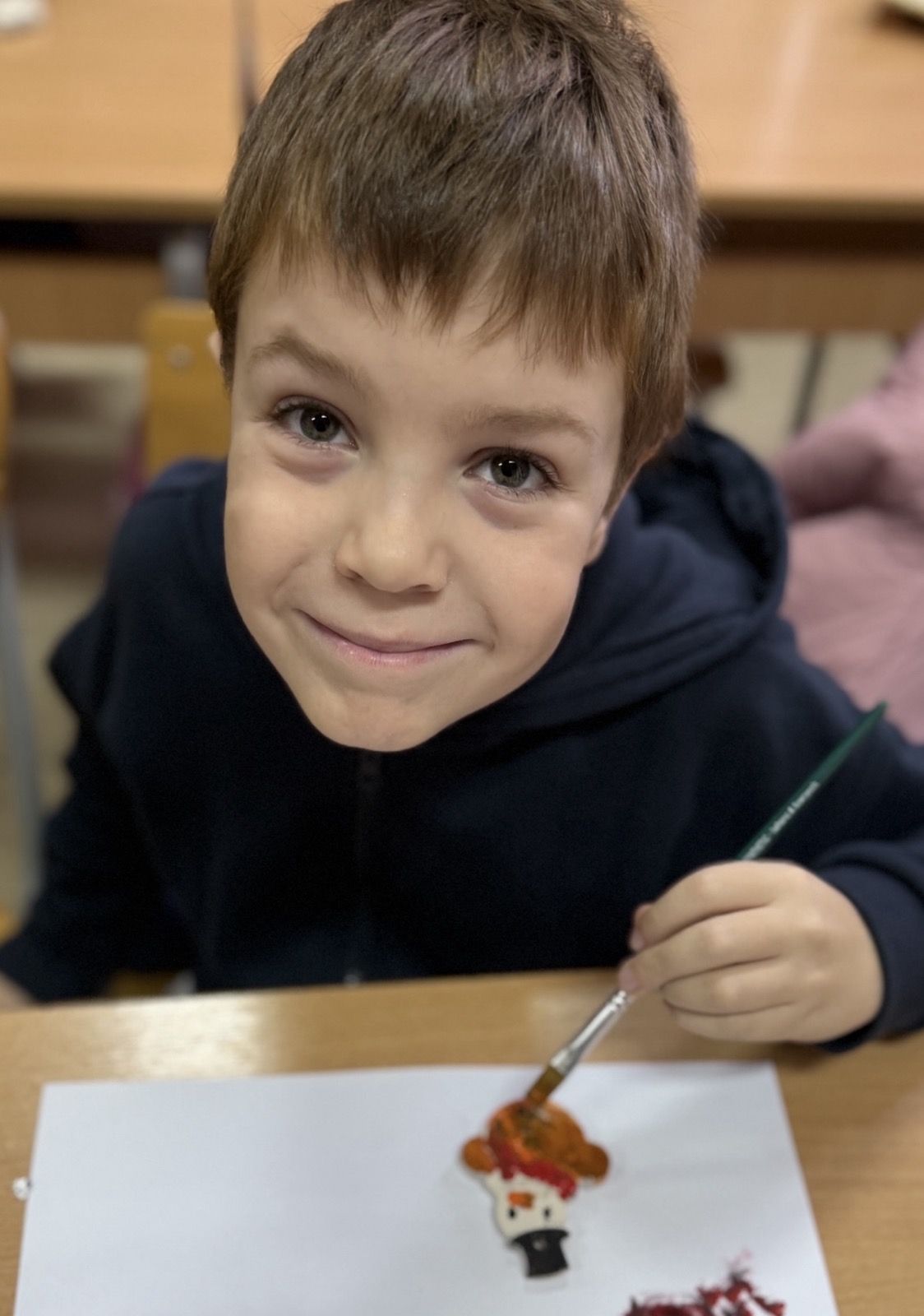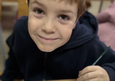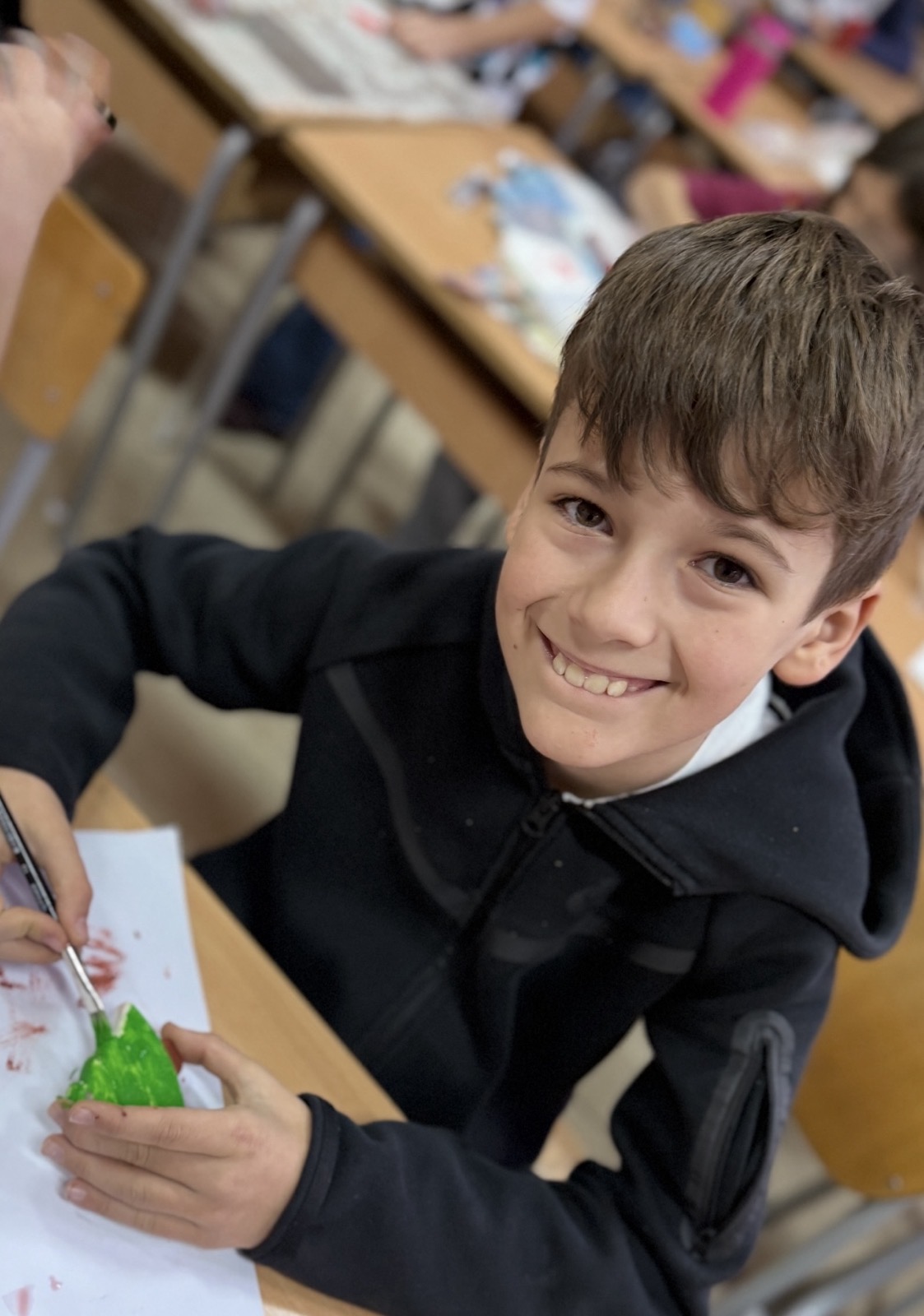 У претпразничном расположењу, ученици одељења 2/5 данас су у продуженом боравку стварали новогодишње фигуре од гипса. Са радошћу су их осликавали и претварали у уникатне украсе за јелку.