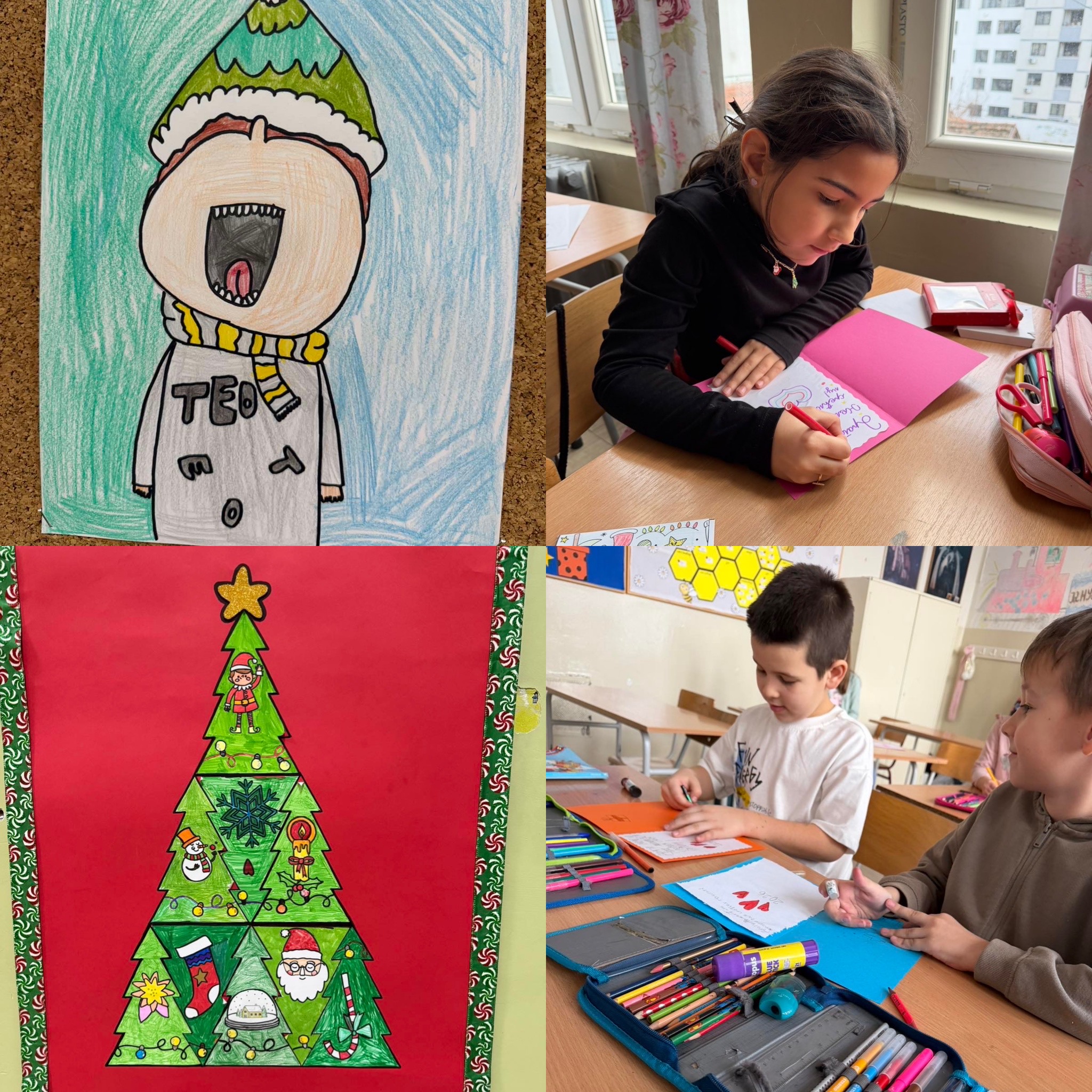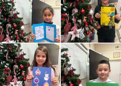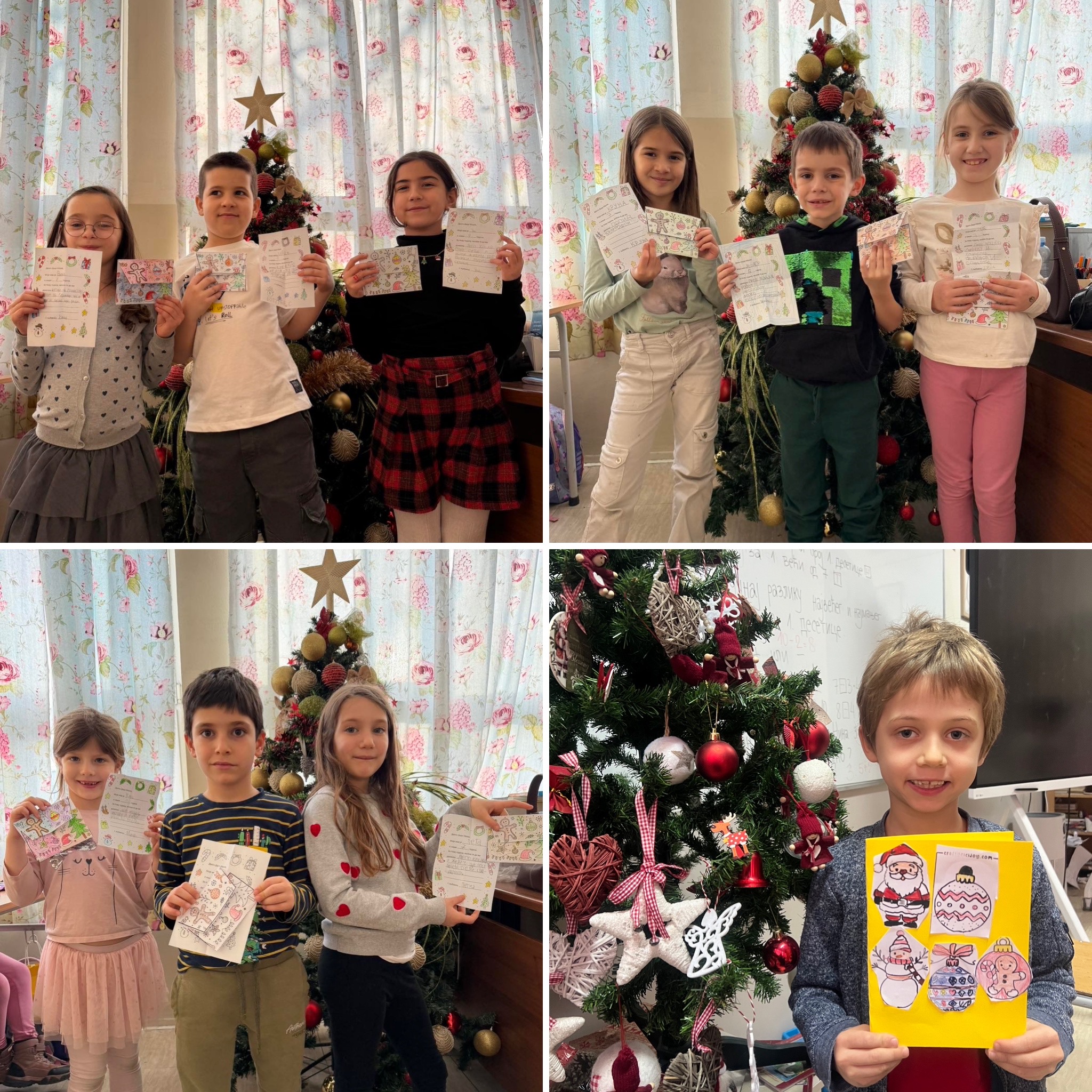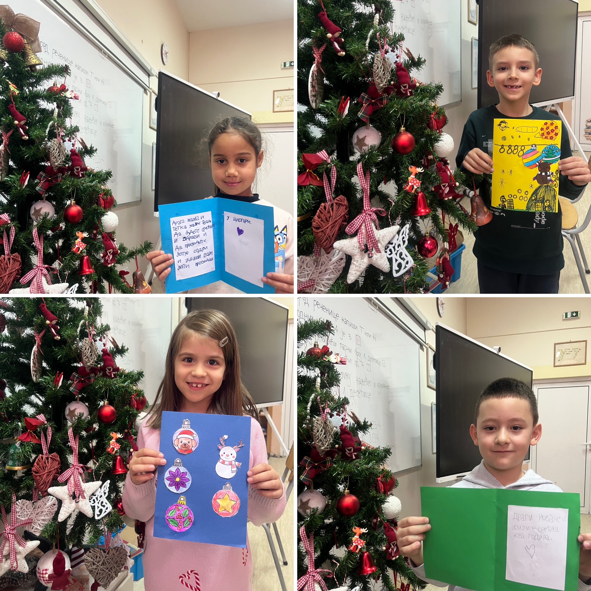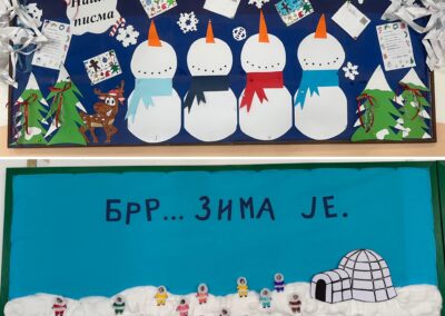 Ученици су са много радости и креативности правили новогодишње честитке, украшавали их различитим техникама и мотивима, а затим су заједно са својим учитељицама уредили паное на тему Нове године. Посебно место у њиховим радовима заузели су Деда Мраз, празнична атмосфера и писма упућена Деда Мразу, која су ученици писали са великом маштом и узбуђењем.