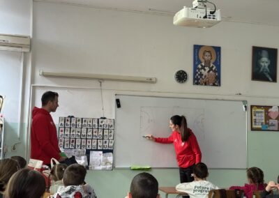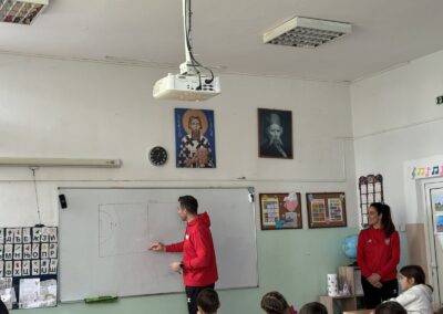 Током посете, наши гости су са ученицима поделили своја искуства из света професионалног спорта, говорили о почецима своје каријере, тренинзима, изазовима, али и о важности упорности, дисциплине и тимског рада. Посебан акценат ставили су на значај образовања и балансирања школских обавеза са спортским ангажманима.