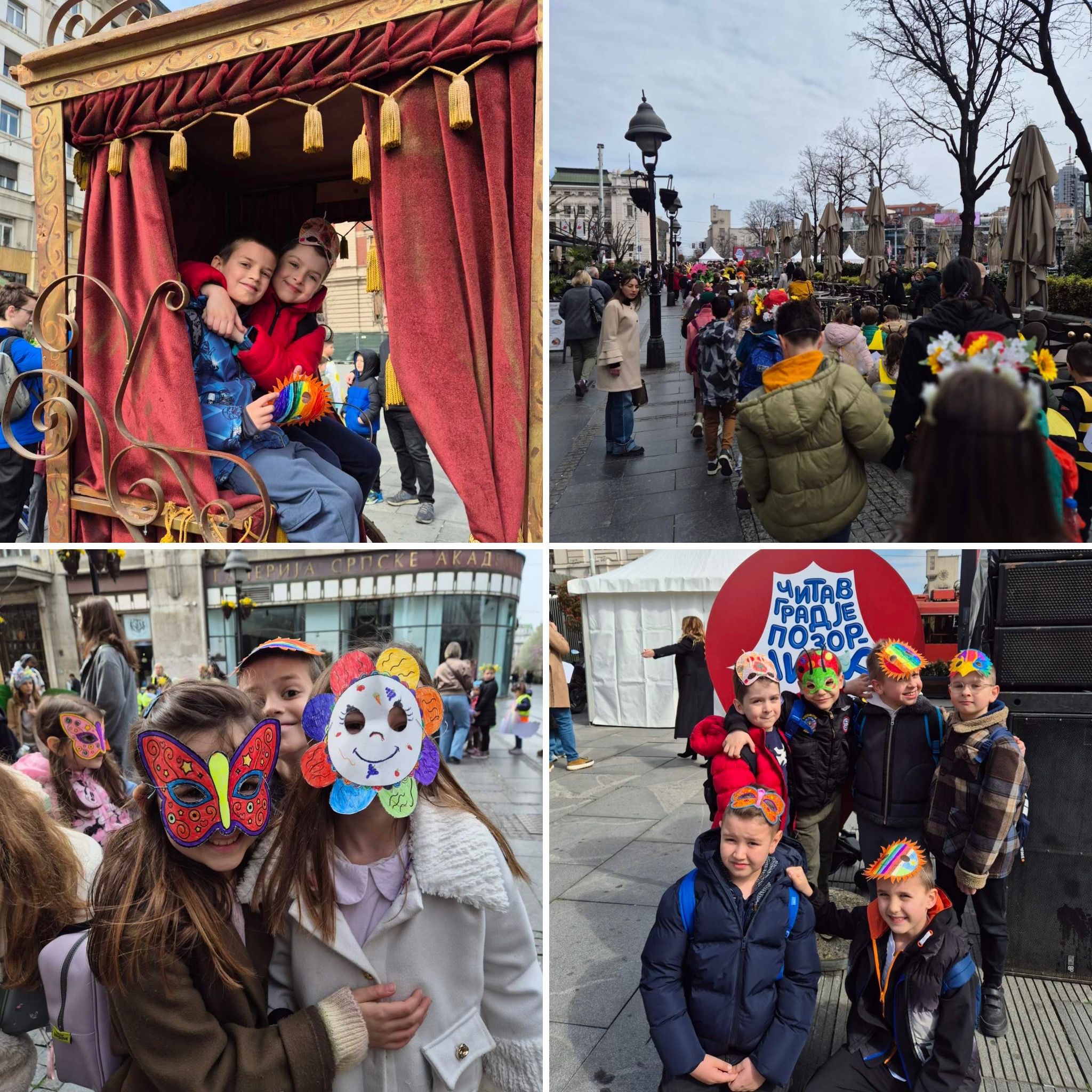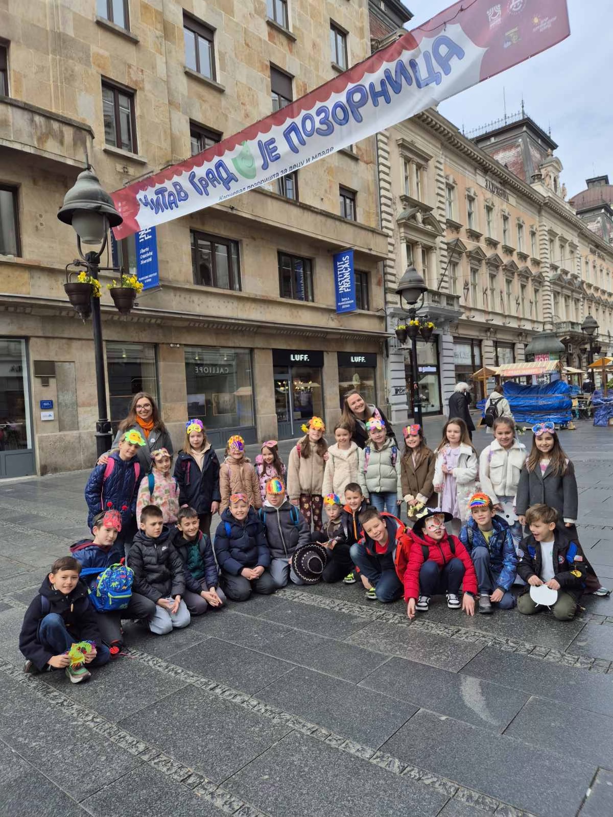 Ученици II/4 су са својим учитељицама, Теодором и Мајом, посетили јединствену градску манифестацију Свечани дочек пролећа и Позоришни карневал за децу под називом „Читав град је позорница”.